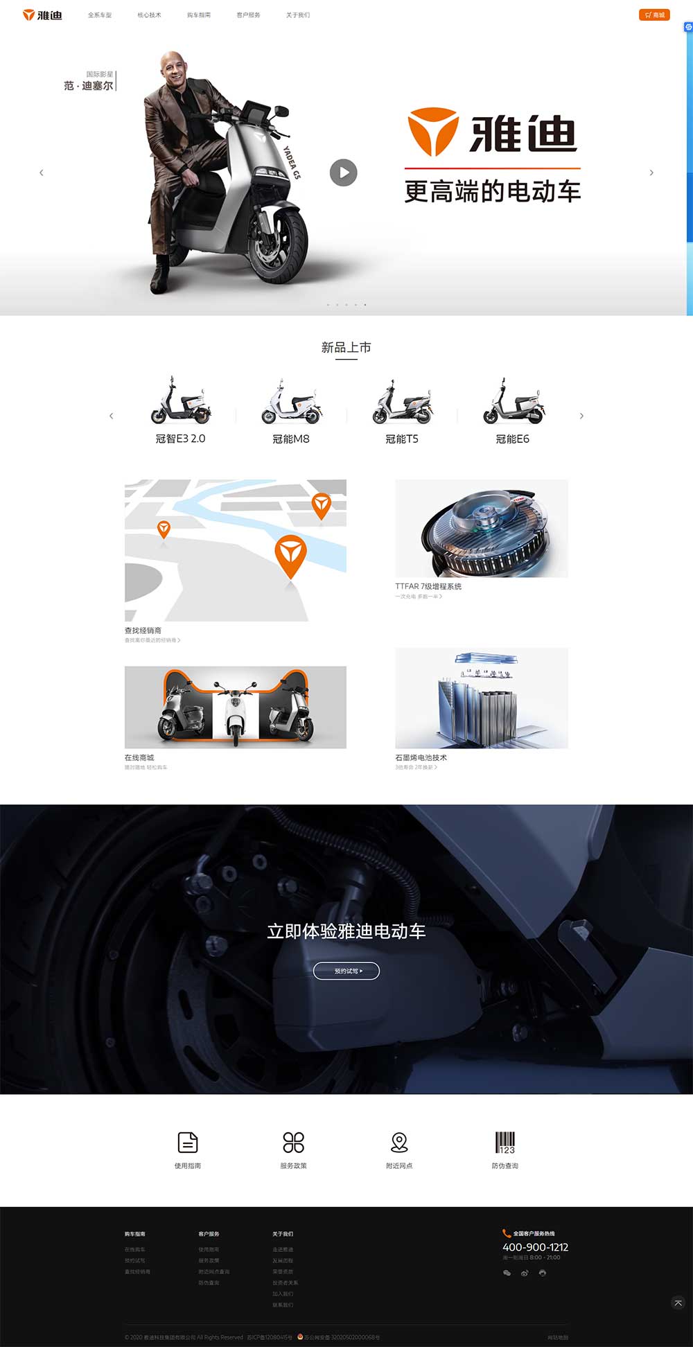 雅迪品牌網(wǎng)站設(shè)計(jì)沖浪者科技制作-雅迪集團(tuán)始終堅(jiān)持“提供讓消費(fèi)者有幸福感的產(chǎn)品和服務(wù)”,始終推行“更高端戰(zhàn)略”,包含“更佳設(shè)計(jì)、更高科技、更優(yōu)品質(zhì)、更精制造、更好服...